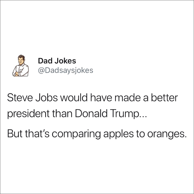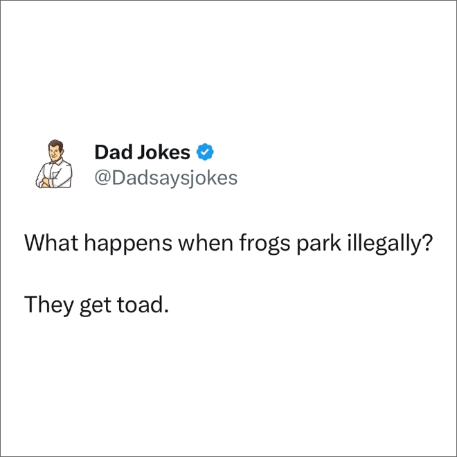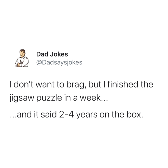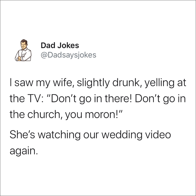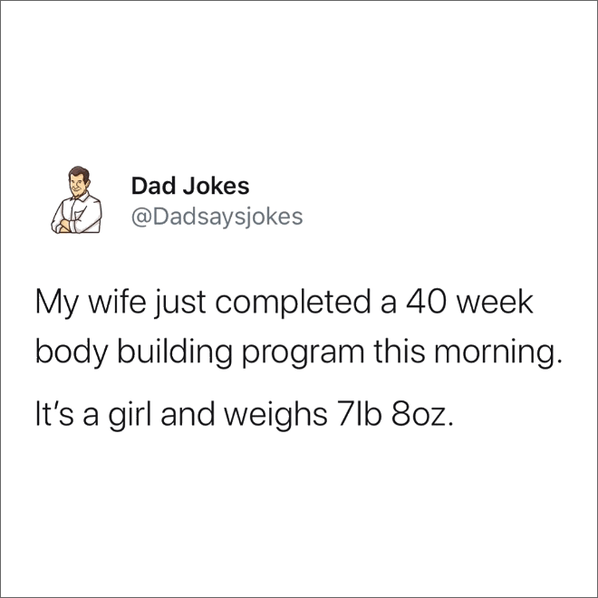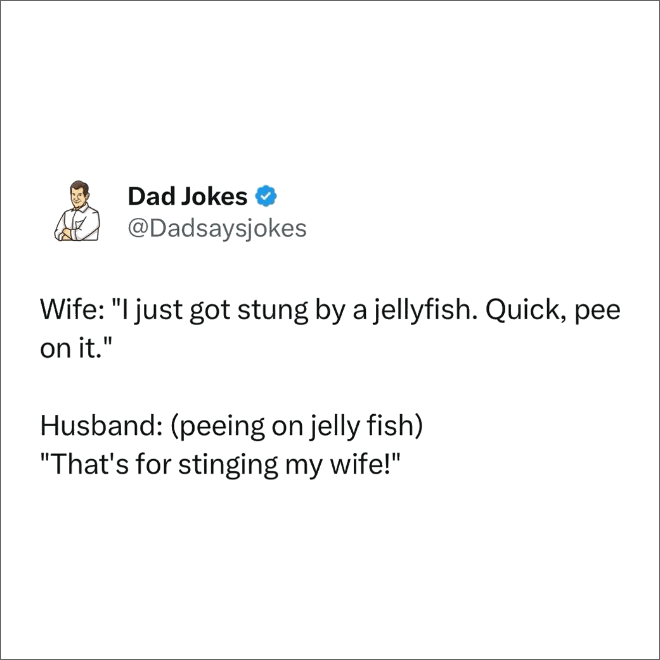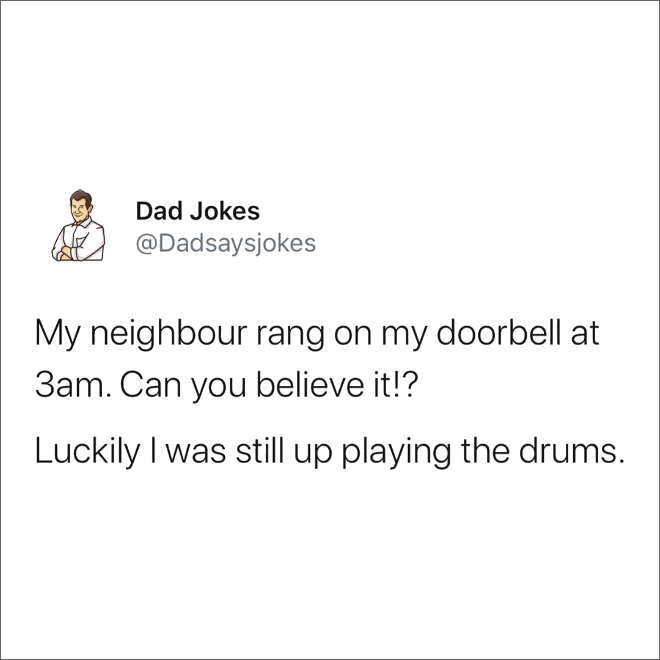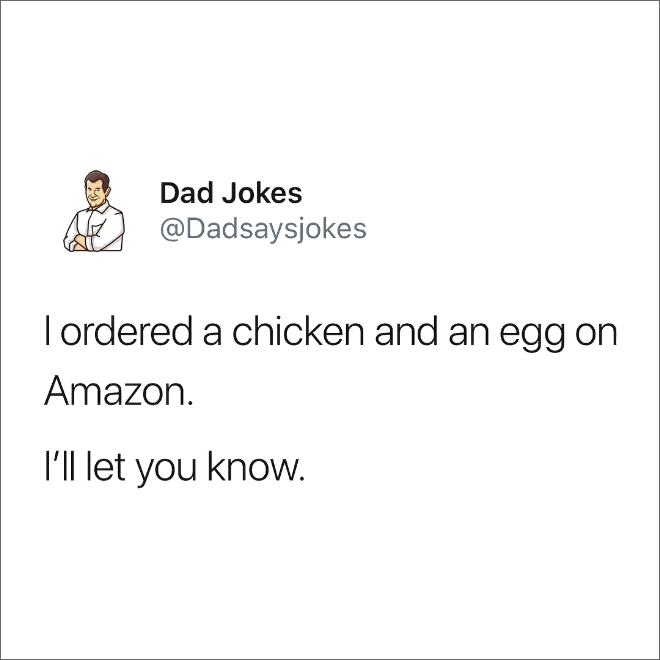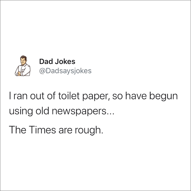 Are dad jokes the lowest form of humour or the fuzzy, harmless past-time we welcome warmly when they happen? Debatable, but if you’re looking for some doozies, the Dad Jokes Instagram account has that shit dialed.