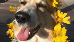 The bulbs are coming up and the flowers are blossoming! The doggos have their snouts planted so far in the dirt, their faces are decorated…