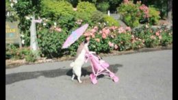 Jenny the Pug is practicing pushing the stroller for when she has puppies of her own. So prim and proper! (via urlesque)