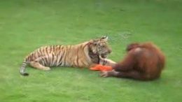 That tiger may be young but I don’t doubt that it could finish off that orangutan in a split second. Oh well, let’s just hope…