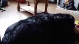 Poor Newfie dog can’t get a moment’s rest with this ninja cat constantly in attack mode.
