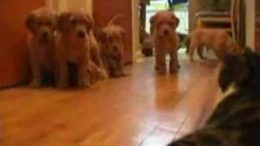 This cat is surprisingly mild-mannered considering it is being walked on and poked at by all these curious puppies. The sadist in me wants this…