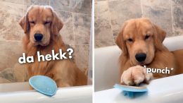 Who knew a face scrubber could be so intimidating! Check out Tucker above!
