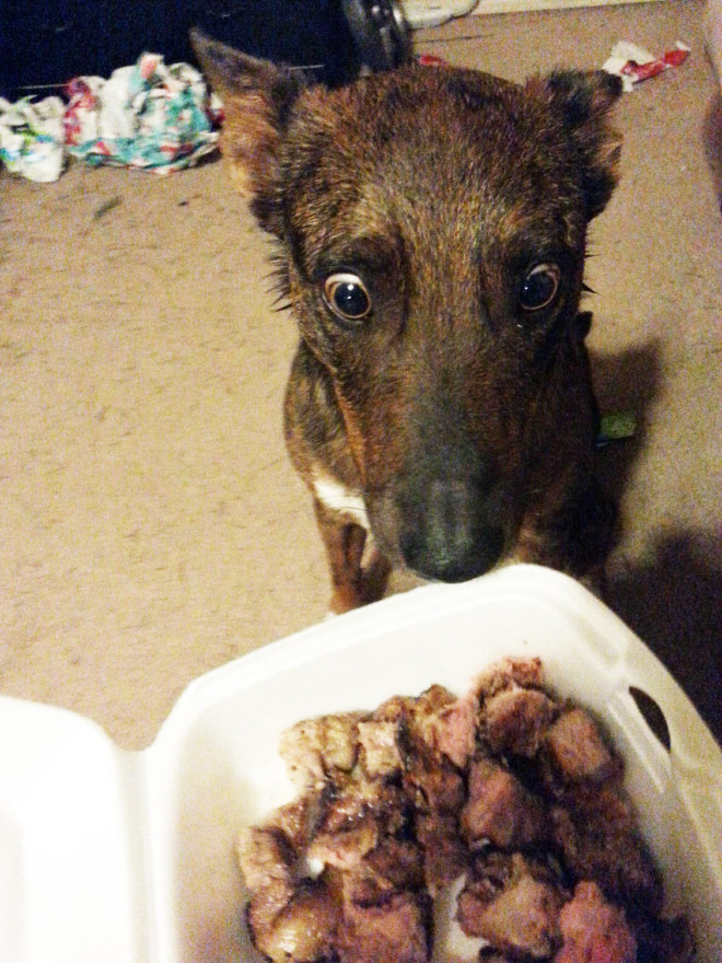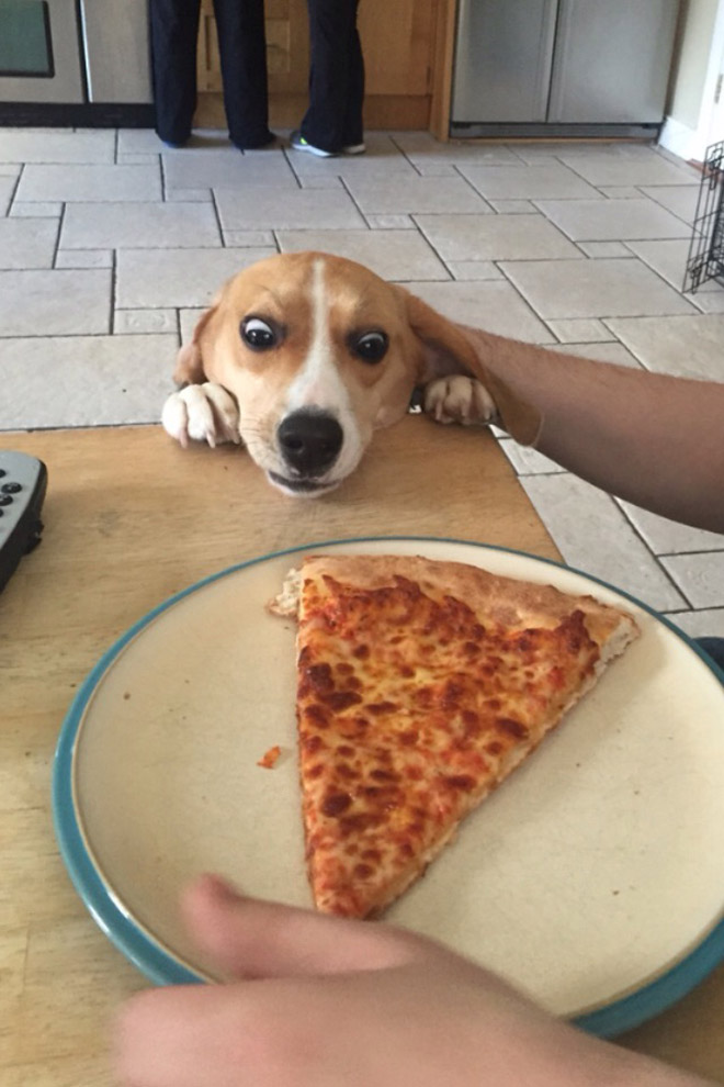 We basically look at food the same way, so it comes as little surprise that doggos go bananas for peesa the way they do! Check out a full gallery of hungr, eye-poppin’ pups after the jump!