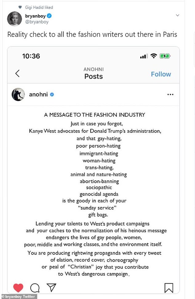 At least ONE of these Hollywood reality spawns has some common sense! Check out the Bryanboy tweet that Gigi Hadid liked after the jump!