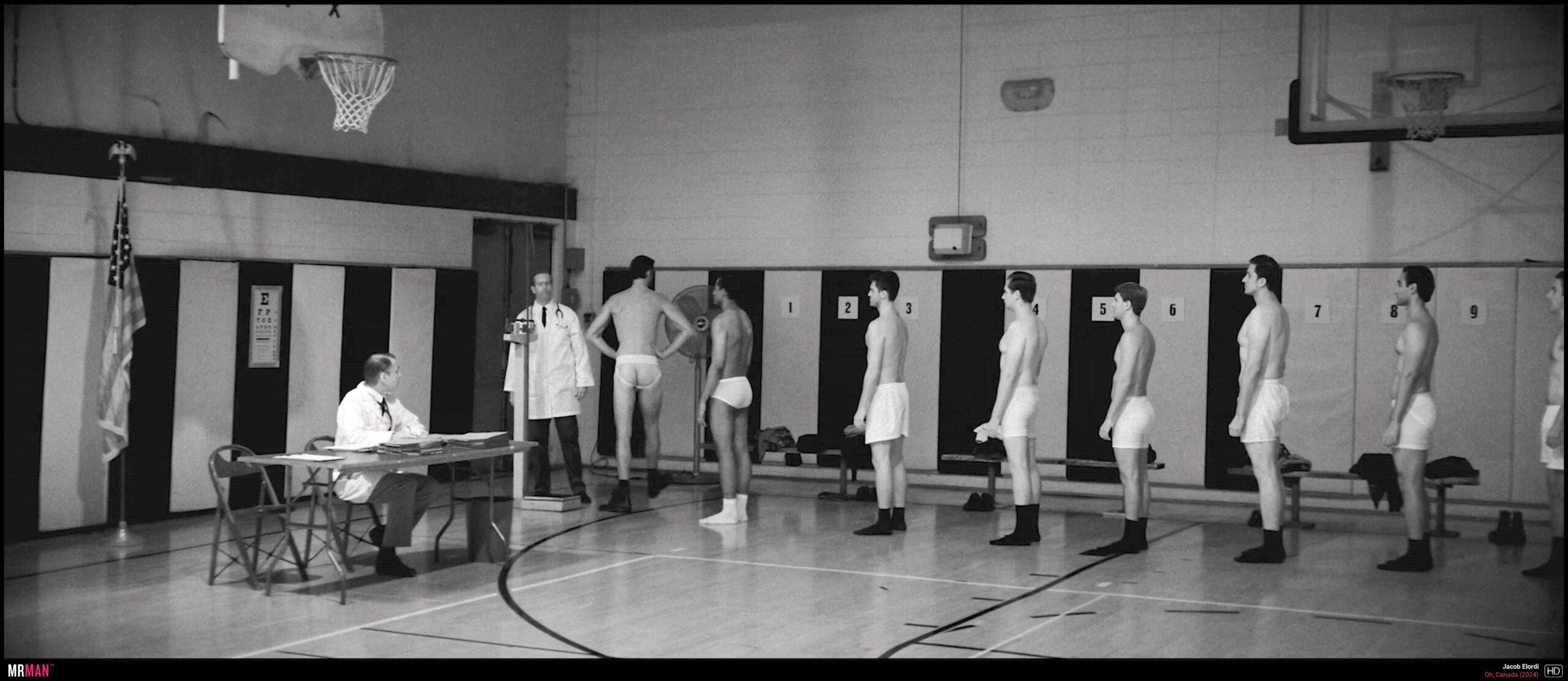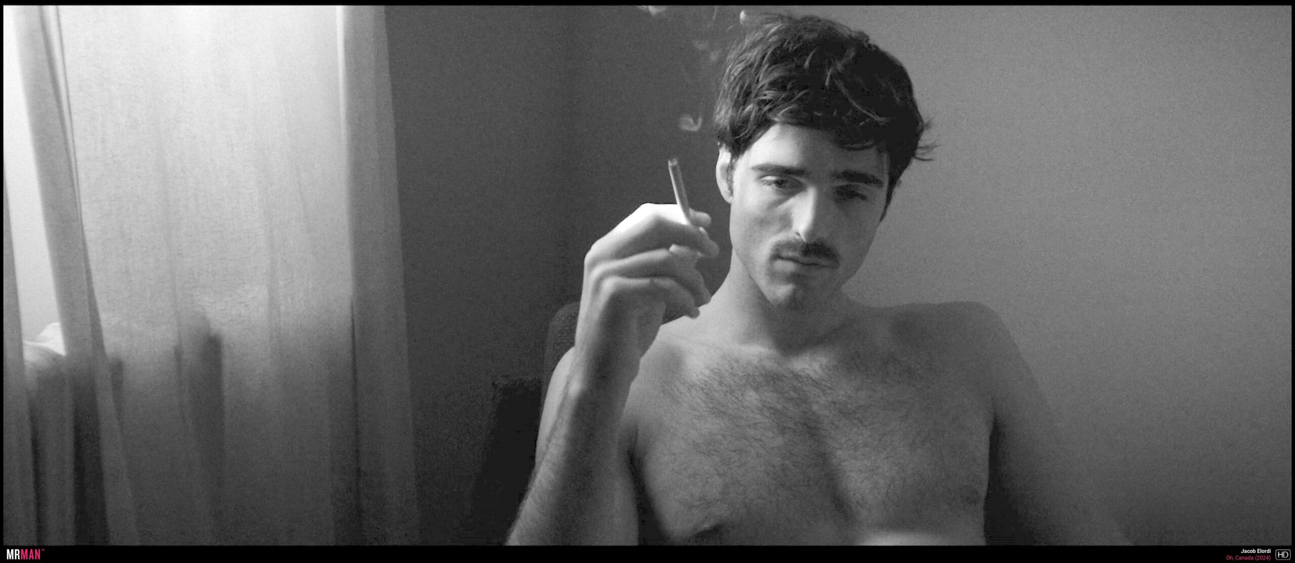 What’s the best way to protest the draft? By showing up to your military physical in a jockstrap scrawled with anti-war sentiment. All 6’ 5” of Jacob is poured into this flower power jockstrap. We also see Jacob Elordi nude during a sex scene, but we must warn you that it is of the straight variety.