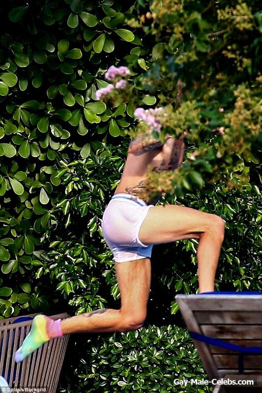 The singer who just launched his own deodorant line is notorious for caring very little about wearing very little while wet poolside on his adventures, and these images are no exception!