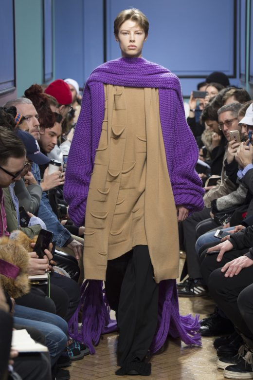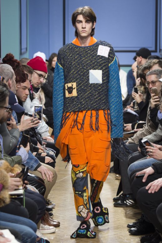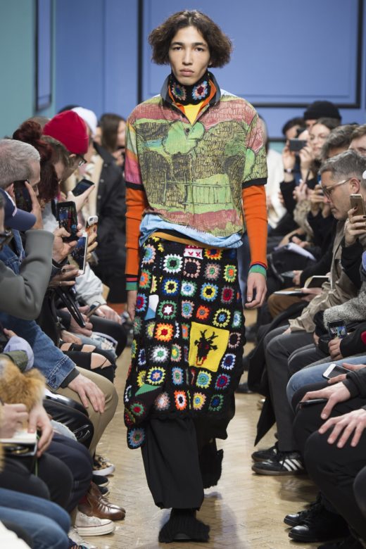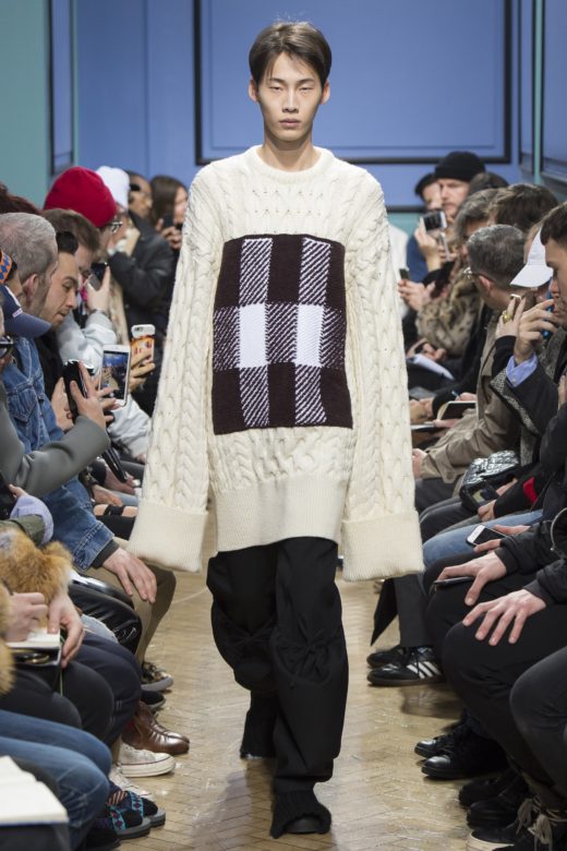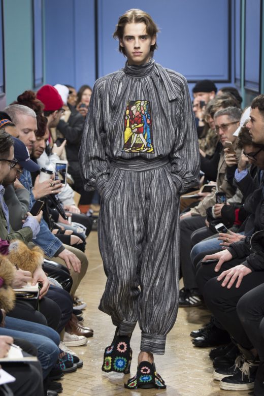 J.W.Anderson‘s show is always one of the most anticipated of London Fashion Week because he goes there. For the Fall/Winter 2017 season, that meant exploring stained glass motifs through a crafts-with-grandma lens, and combinging oversized By-the-Pound-chic pieces with lovely tailoring.