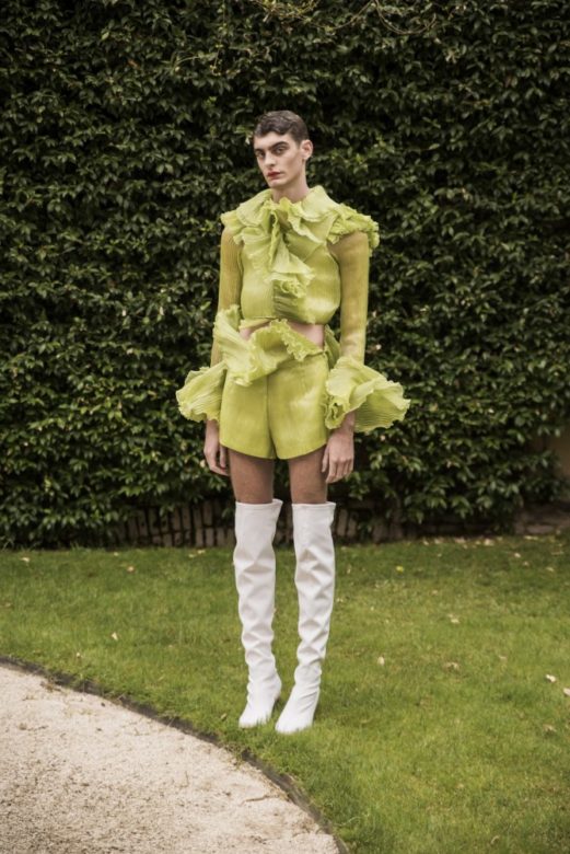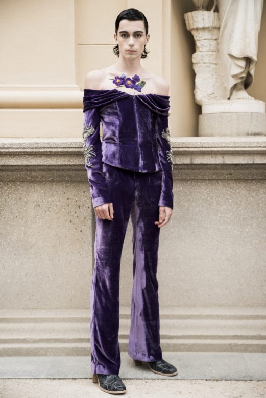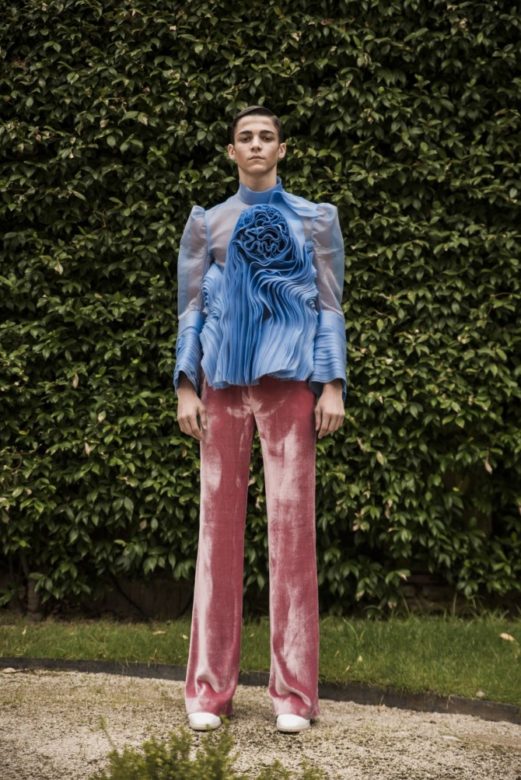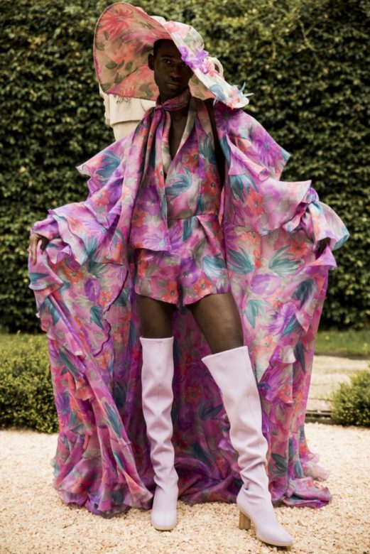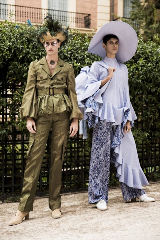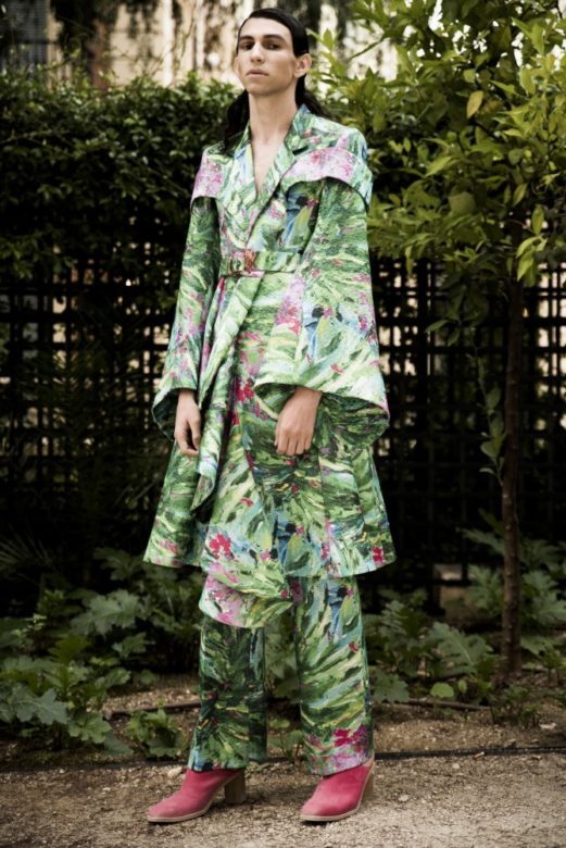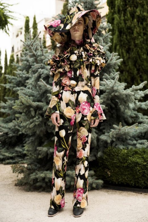 For the latest Palomo Spain collection “Boy Walks in an Exotic Forest,” designer Alejandro Palomo presents a bouquet of gender-fluid looks that take us on a wild and unreal botanical safari. Put on your (large) hat, and come along for the ride.