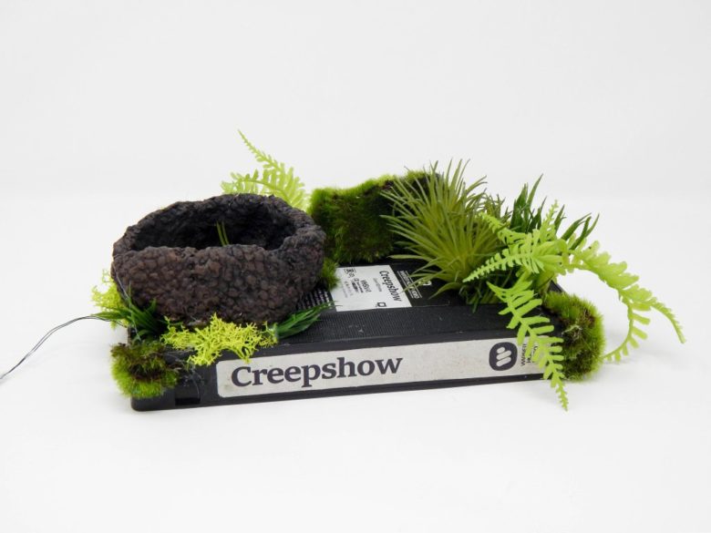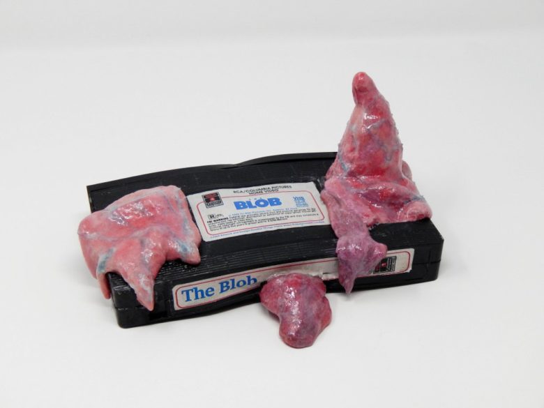 The handmade, mixed media sculptures use polymer clay and other materials to breathe new life into old tapes, each one themed after the movie contained on the tape. Horror favorites The Thing, Critters, Creepshow and The Blob are currently available, selling for $80 apiece.