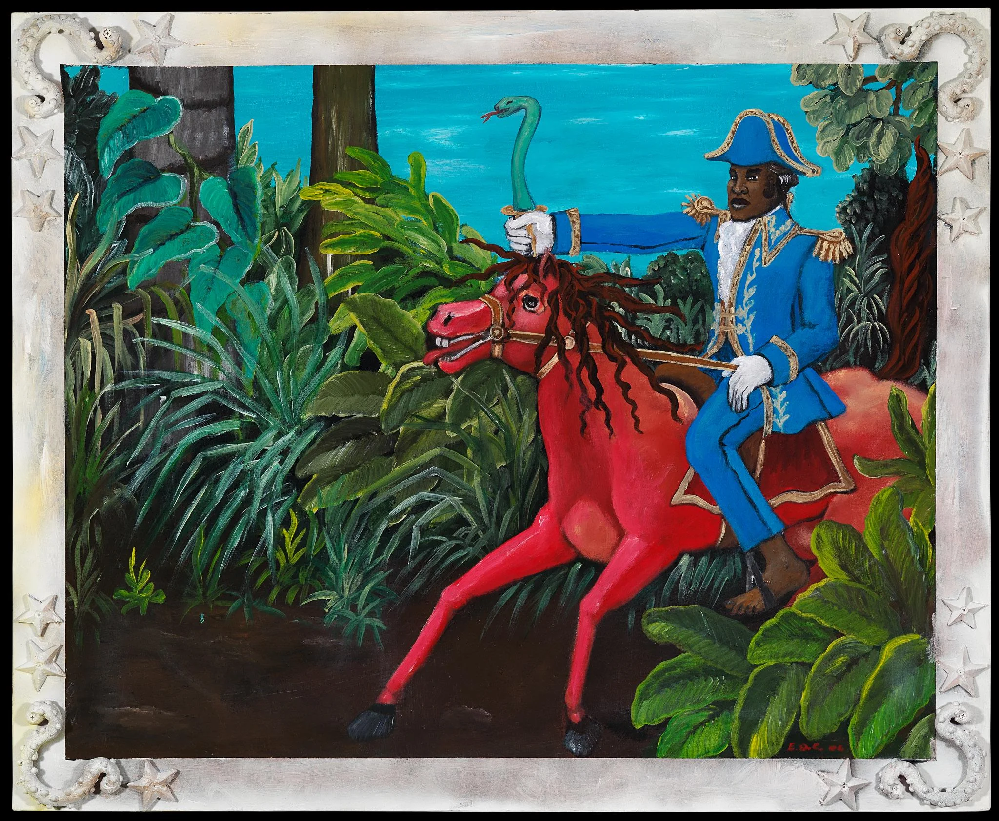 Apparently, they weren’t allowed to paint the revolutionary who helped free Haiti who is riding on the horse because IoC said it was too political – BUT they did get away with the horse itself. The inspiration artwork is ‘Toussaint Louverture’ by Edouard Duval-Carrie:
