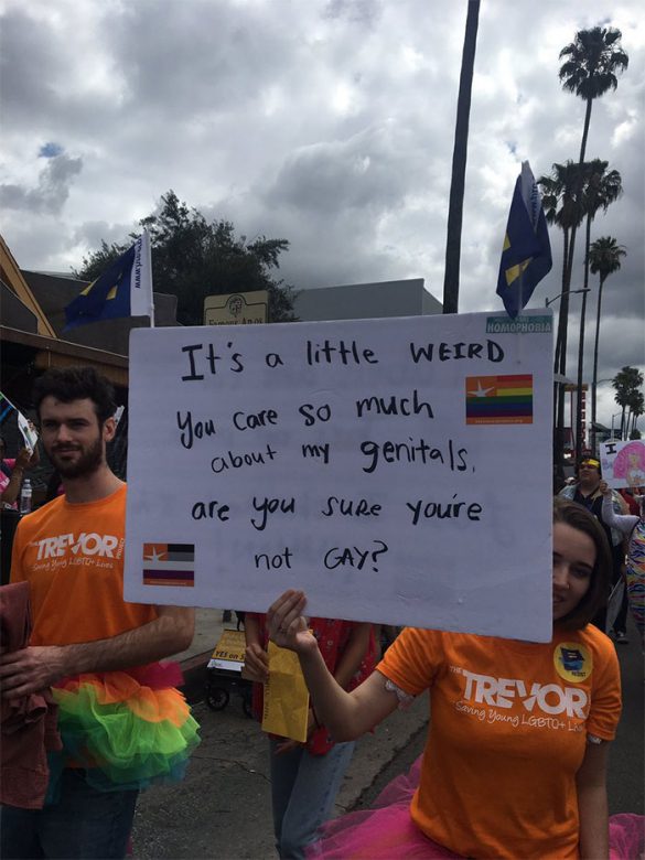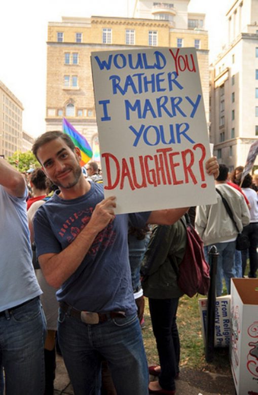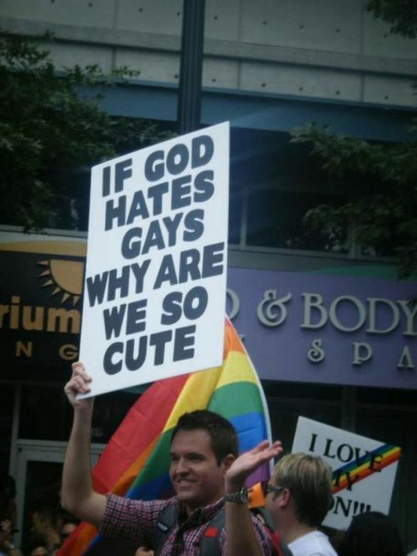 It’s PRIDE MONTH, and gays everywhere are celebrating and reminding people of their pride, but also how ridiculous some of the anti-gay hate and discrimination can be with some pretty creative signage! Check out a full gallery after the jump! Let’s review, or maybe copp one for yourself!