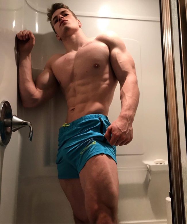 He’s so beautiful. That white skin, those muscles, that cock and that cute smile. I’d love to lie down with him and give myself completely to him after, and only after, having admired every chiseled muscle from head to toe.