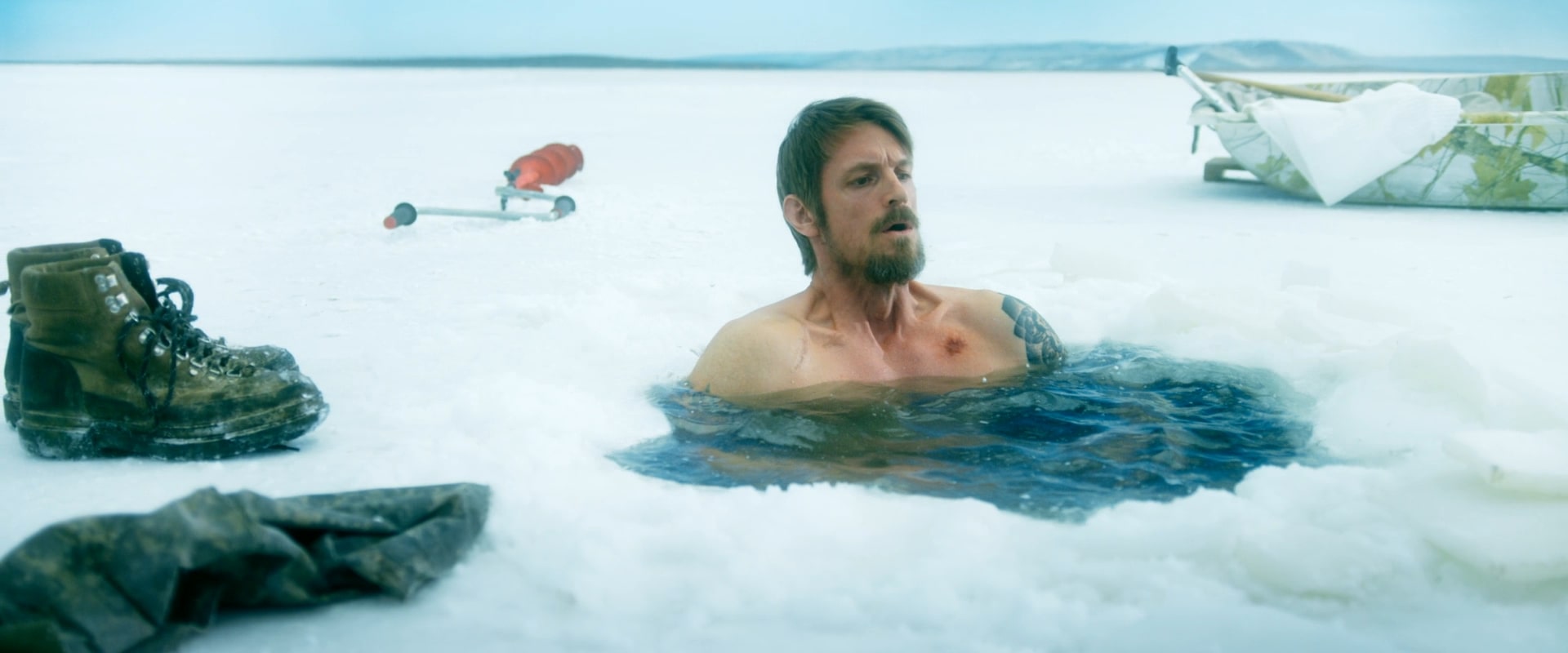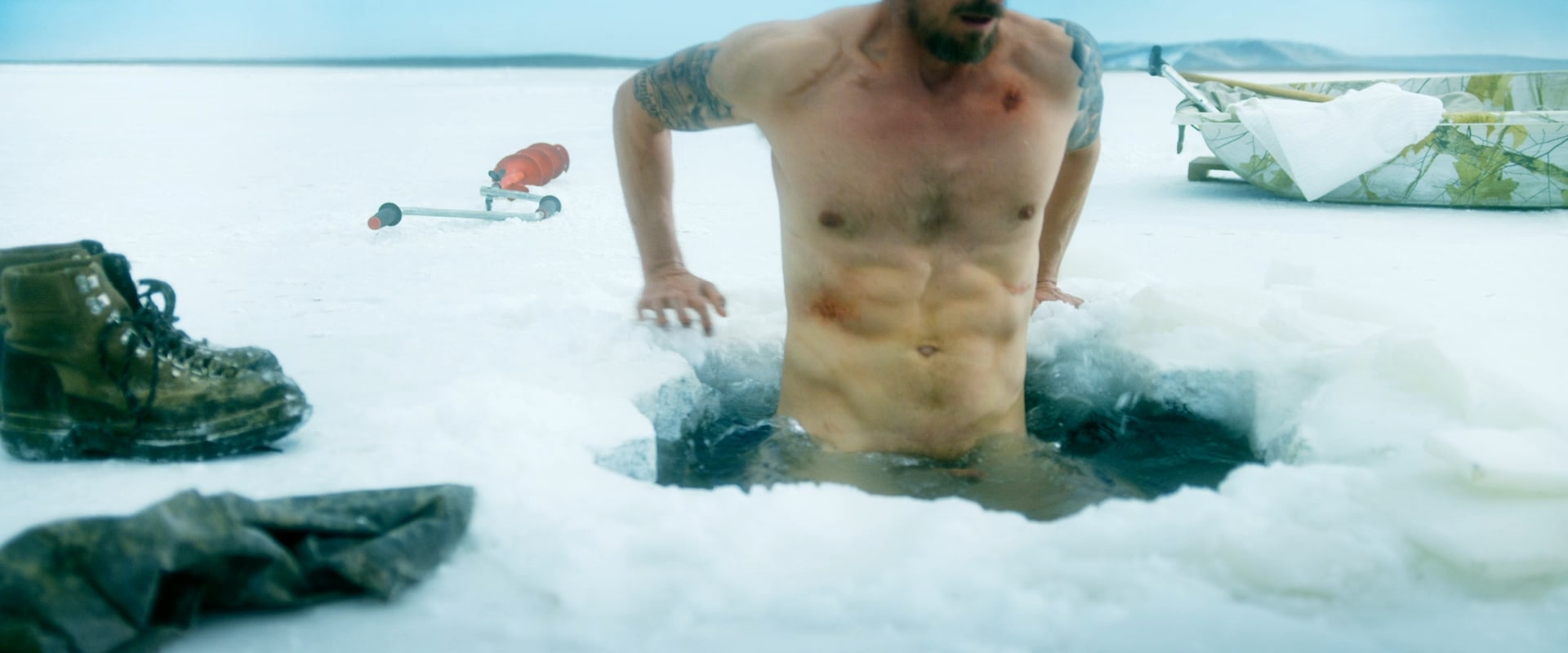 Joel Kinnaman looks to be free-balling it despite the chilly circumstances in 2025’s Ice Fall!