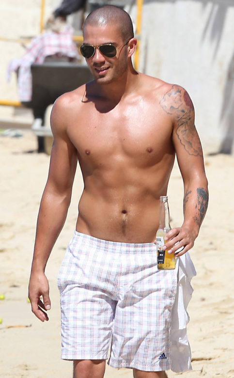 Max George of band The Wanted has appeared partially clothes before – even donning the cover of AXM’s THE NAKED ISSUE (above) where the headline was ‘Who’s got the biggest in the band? It’s got to be me.’ See the ‘I’m Glad You Came’ singer for yourself after the NSFW jump!