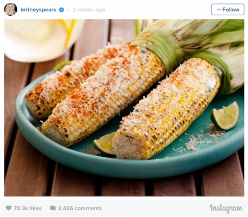 I hope you’re sitting down, because this news might be hard new to take… but Brit Brit‘s in hot water for posting a pic of grilled corn that WASN’T her own y’all – and the worst part is it seems like she tried to pass it off as hers, captioning the photo: