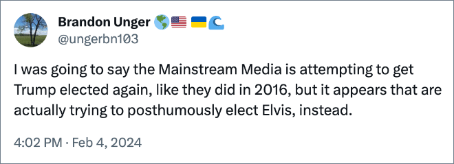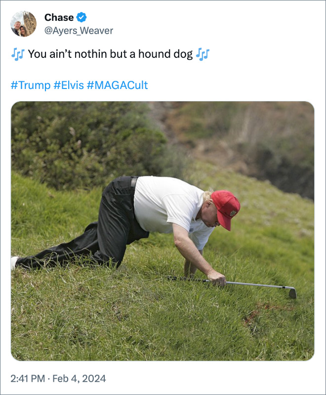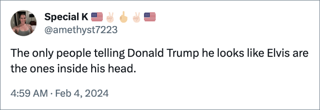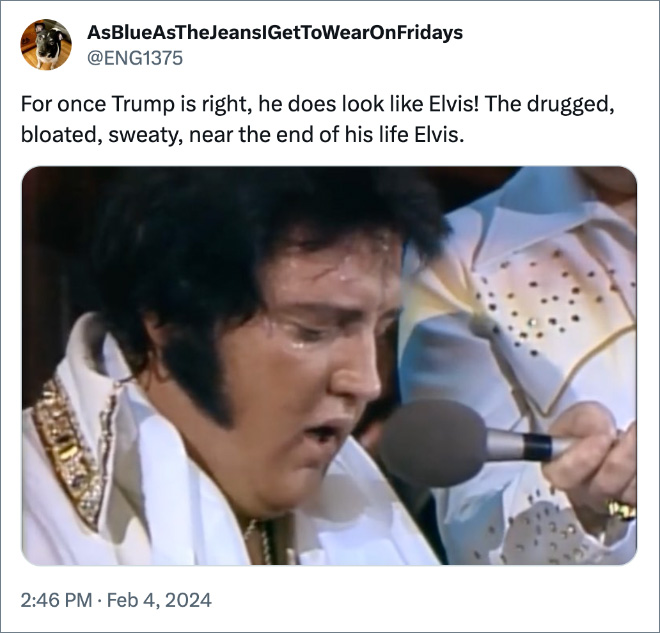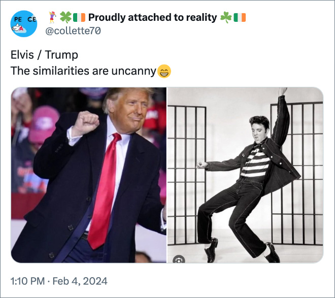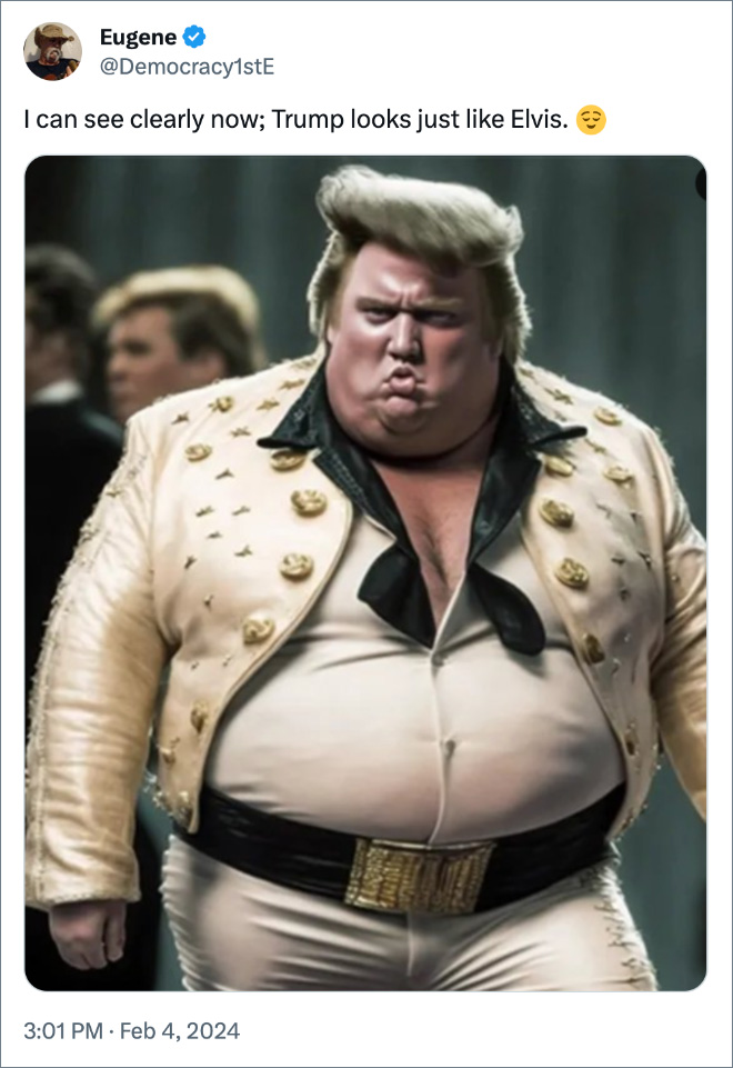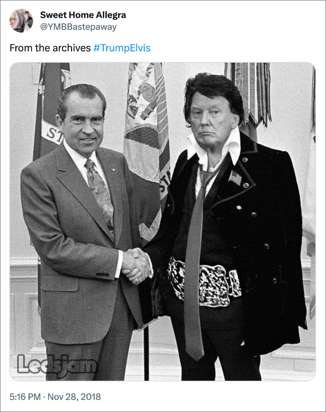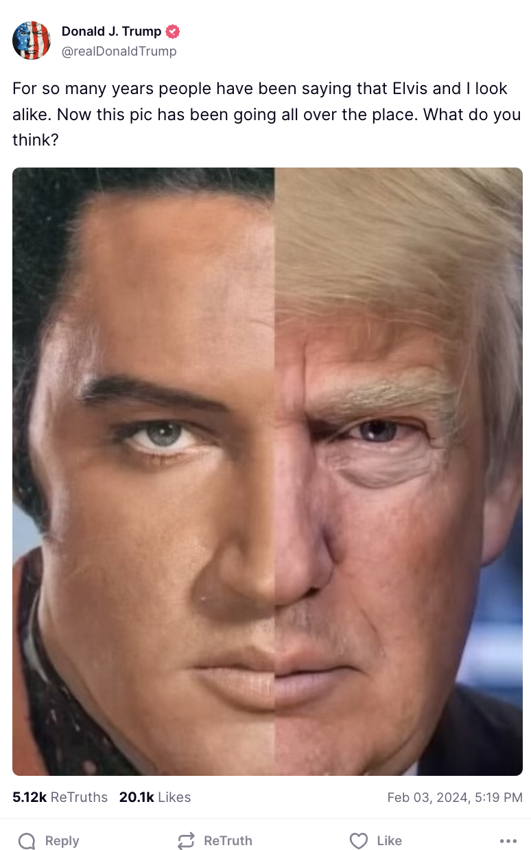 The Orange Oompa-Loompa posted to his ‘Truth’ platform to raise the pressing topic of the great debate of whether or not he looks like Elvis. The internet has thoughts. Check out some of the funniest reactions after the jump.