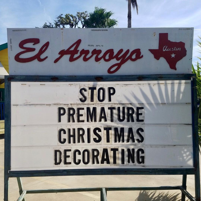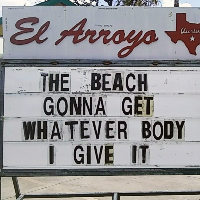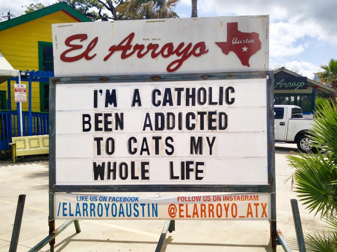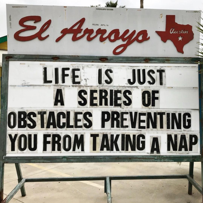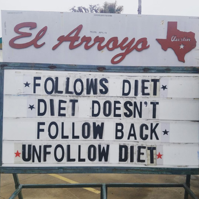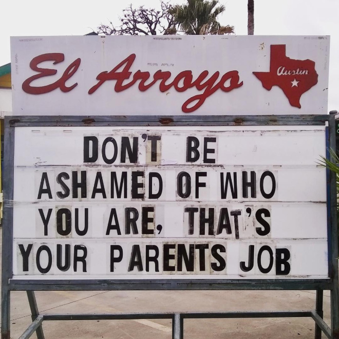 El Arroyo is a pretty well-known Tex-Mex restaurant in Austin, Texas, but they aren’t famous just for their food. What really puts El Arroyo on the map is their brilliant sign which is changed on a daily basis.