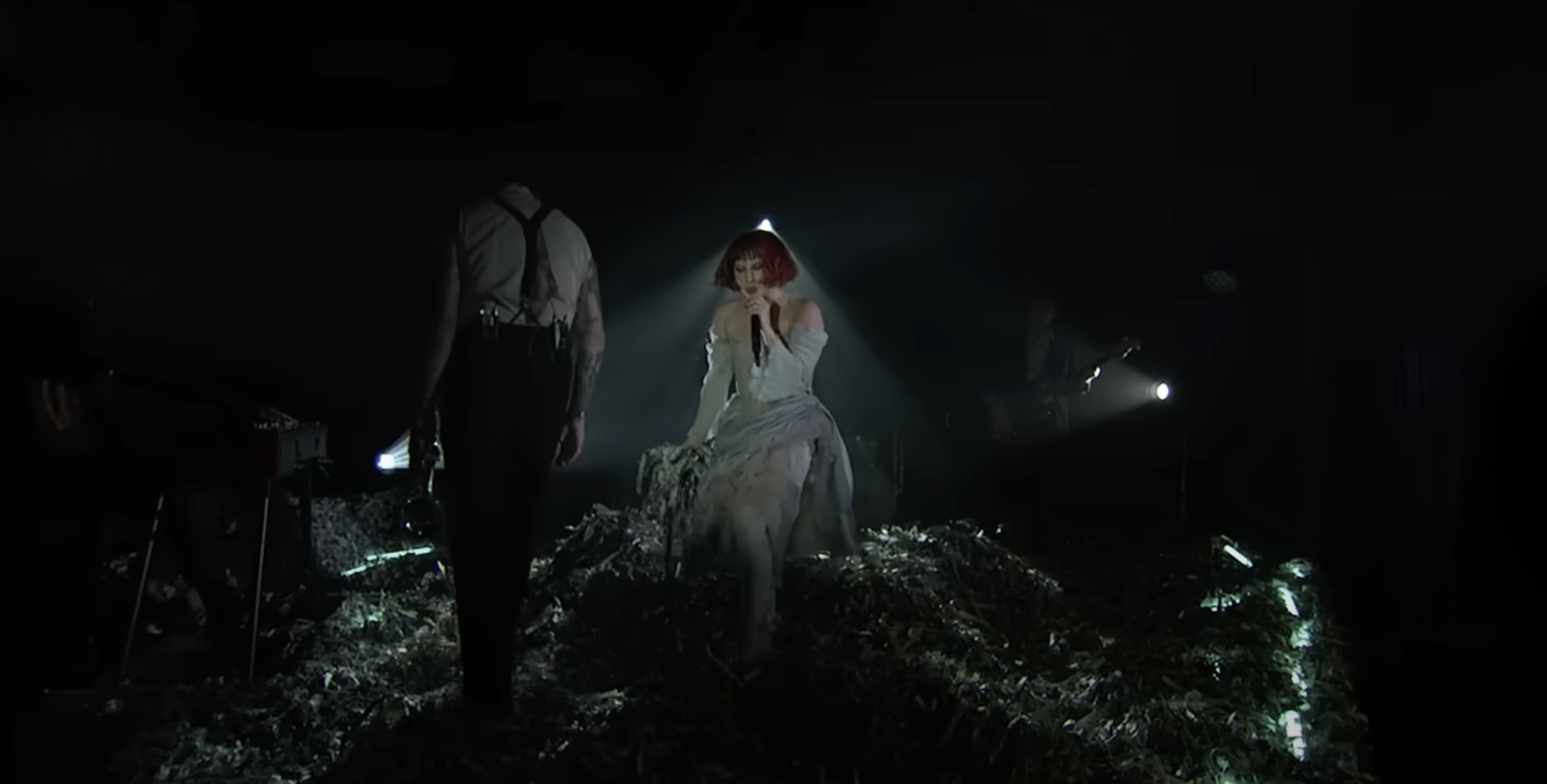Gaga took to the stage on Jimmy Kimmel Live! this week to perform “Harlequin”, the first single off of her companion album to her upcoming role as Harley Quinn in the Joker: Folie à Deux! We love this little broken down porclean doll vibe she’s working for this press tour. It’s very Spirit-Halloween-able…
