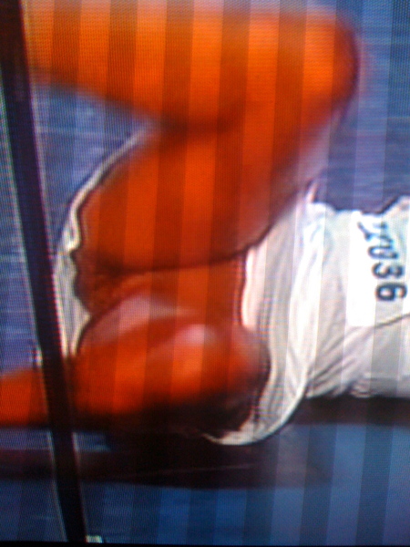 Thank you to loyal reader Davey who was quick enough with a digital camera to take a few surprisingly clear snaps off of his television screen. Those and a (disturbingly Zapruderesque) clip after the jump. Safe for work only if yr an OB/GYN.