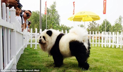 The Daily Mail reports that a new craze is sweeping China: custom dyeing your canine companions to look like more exotic animals! This tiger’s cute enough, but wait till you see the darling panda-pooches– after the jump!