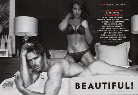 Everything’s better in Europe! Soap opera hunk Brandon Beemer (maybe the perfect man?) had to go all the way to Italy to get naked– for Italian Vanity Fair. He could have stayed right here, stripped down for Bold and the Beautiful, and I think plenty of people would have been perfectly happy.