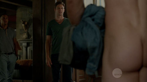 Bitten‘s blonde male lead Greyston Holt plays a werewolf –and you know what that means! Whenever a werewolf shifts, they lose their underwear! And their chap stick. And their cellphone. Check him out again after the jump.