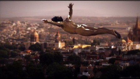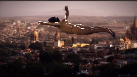 Mexican singer Ari Borovoy flashes his buns while flying over a city in the film Deseo. See the NSFW shots after the jump!
