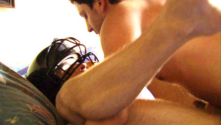 In the scene depicted after the jump, Ethan is getting it from this jock guy who makes him wear a football helmet while they have sex. It’s hilarious, and sort of hot. You can watch the full NSFW clip here.