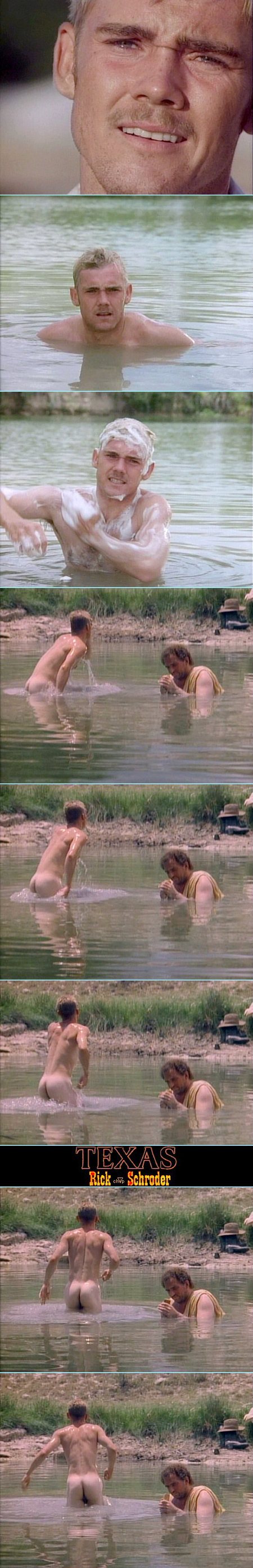 In the TV movie Texas, Rick Schroder goes skinny dipping and shows off his cute little butt. If I’m not mistaken there might be a bit of fruit bowl going on as well. Check out the NSFW pictures after the jump.