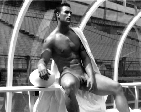 And from the upcoming “making of” DVD for the Dieux du Stade 2007 calendar, I bring you Steve Tabary, another naked rugger, this time with shaved pubes. Smooth privates are not my thing personally, but I like to be equal opportunity here. Pubes or no, you cannot deny his hotness. See the NSFW shots after the jump!