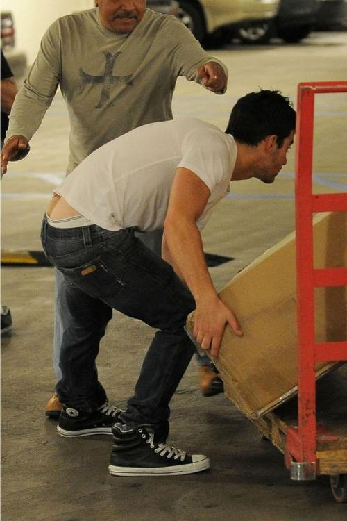 Joe Jonas was photographed moving some sort of furniture out of a truck wearing low-cut jeans. You know what that means…