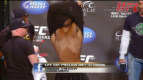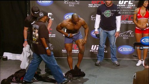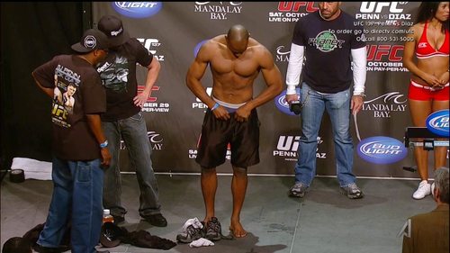 Everyone knows that a weigh-in is an especially fruitful moment for seeing athletes strip down to their, uh, natural states. But something tells me UFC fighter Clifford Starks didn’t intended for his peen to go peek-a-boo at a recent weigh-in ceremony. After the jump, see Mr. Starks’ NSFW tip slip.