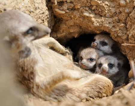 Meerkats are like a cuter version of people. Look at these babies at Zoo Basel socializing in their little burrows being collectively raised by the clan. So progressive.