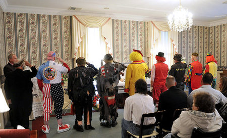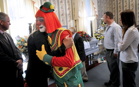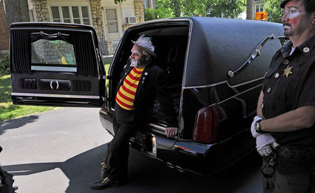 This reminds me of the time I tried to look up “Fun” in the phone book and only found “Funeral”. The patrons of Norman Thompson’s funeral in June were also his colleagues from the Antioch Shrine Funster Clown Unit. It’s quite sweet that they dressed up, but thank god this didn’t take place at night, cause then it would have just been terrifying.