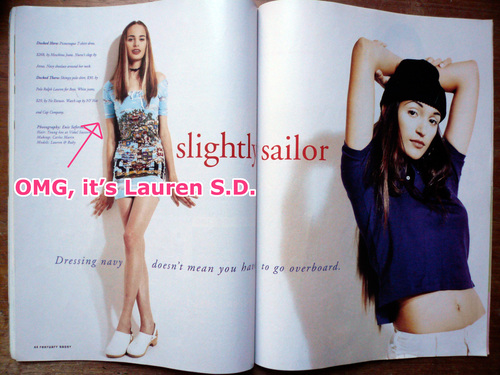 Kelis appeared in a prom-themed editorial in the March 1994 issue (above) and Lauren appeared in a sailor-inspired spread in February 1993 (below).
