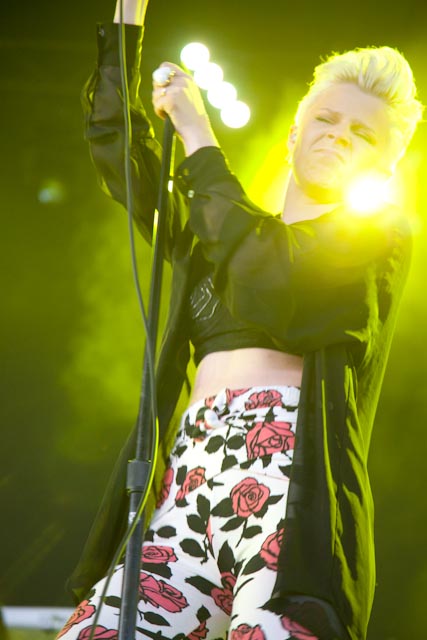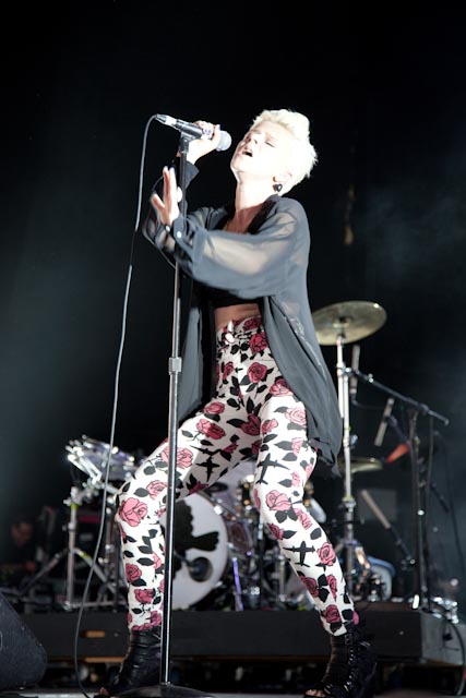 Though the venue was only a third full (likely due to the head-scratching bill that also included maudlin rockers Keane and Travis front man Fran Healey) the audience roared like a full house the moment the Swedish singer strutted out on stage around 8pm.