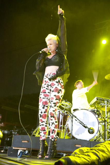 Backed by a four-piece band that included two drummers, Robyn opened with the robo-pop-rap track “Fembot” and “Cry When You Get Older”, both off her recent album Body Talk Pt. 1. She kept the party going with a set that exclusively favored dance-oriented material like “Cobrastyle”, “Konichiwa Bitches”, “Dancing On My Own” and Royksopp collab “The Girl and the Robot”. The clubby mood gave Robyn a chance to demonstrate her surprisingly adroit dancehall dry humping, running man boxercise and penchant for suggestive pelvic thrusting and gyrating. But the pièce de résistance came when she slowly peeled a banana and ate it during the song “Don’t Fucking Tell Me What To Do”.