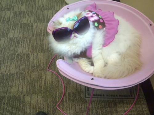 Luna is a kitty that LOVES FASHION she lives in Arizona and is from Mexico, she is the ultimate top kitty model, nobody walks the cat walk like her (sorry Tyra), she also enjoys doing TRICKS like a dog.