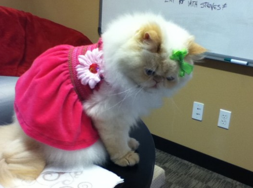 Luna the fashion kitty, however, wears clothes because she loves them. Simple as that. Just ask her Facebook page:
