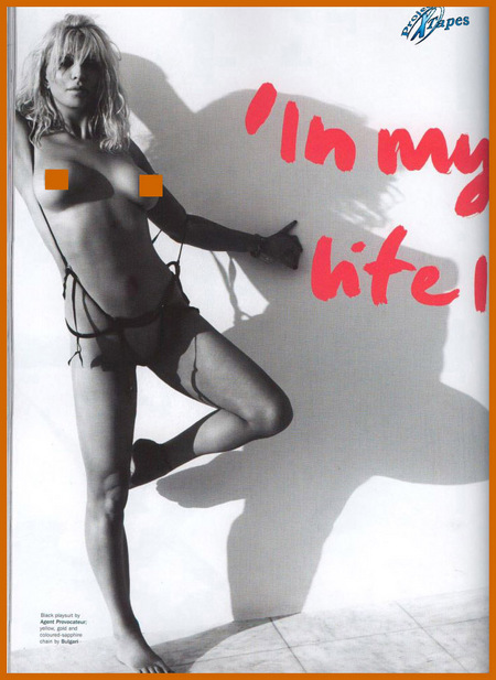 I only have a humble obligation to propagate the truth, or rather some photos of Courtney Love where her nipples are covered with little squares (does anyone know if these appear in the hard copy?) and her body has been Photoshopped beyond recognition. Enjoy them all after the jump, but don’t say I didn’t warn you.