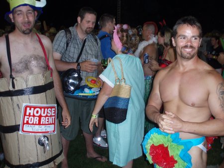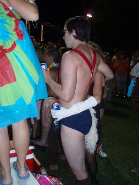 Every ten years there is a festival/reunion in KINCARDINE, Ontario. At said festival there is a parade at night where the normally straight-laced folks go a little crazy and let out their suppressed sexual energy by wearing drag and/or revealing costumes. Above are some photos from the Brigadoonish parade that just passed.