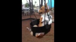 Does this little guy have as much panache as the last corgi in a swing that we posted?