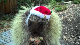 If ever you wondered what a porcupine wearing a Santa hat and eating a Christmas cookie looked like, well, now you know.