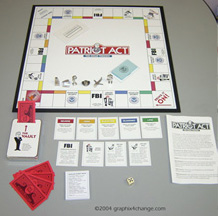 It looks like Monopoly, but that’s where the similarity ends. In Patriot Act: The Game, players move around the board working towards the goal of being the last player left with any civil liberties. Spaces are color-coded according to the familiar U.S. “alert system,” and landing on these spaces results in the loss of civil liberties either by that player or by another player deemed “suspicious.” Other fun detours involve being interrogated by the FBI and being shipped off to Gitmo.