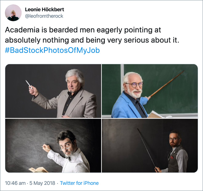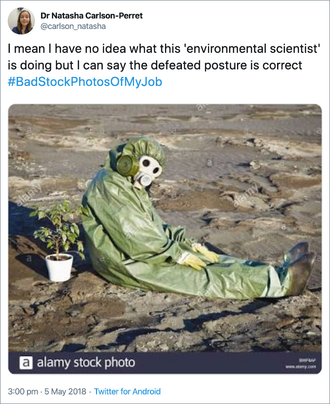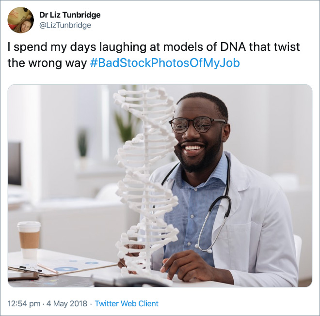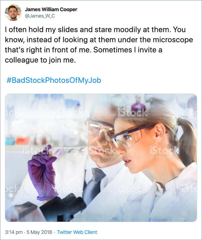 There’s something about stock photos that make them instantly recognizable as a genre, a weird, posey cheesiness often unified by hilariously bad photo editing. When you see a stock photo, you just know that it’s a stock photo. The hashtag #BadStockPhotosOfMyJob, originally started by scientists, is a perfect collection of the times when stock photographers clearly had no idea what they were doing with their weird photos.