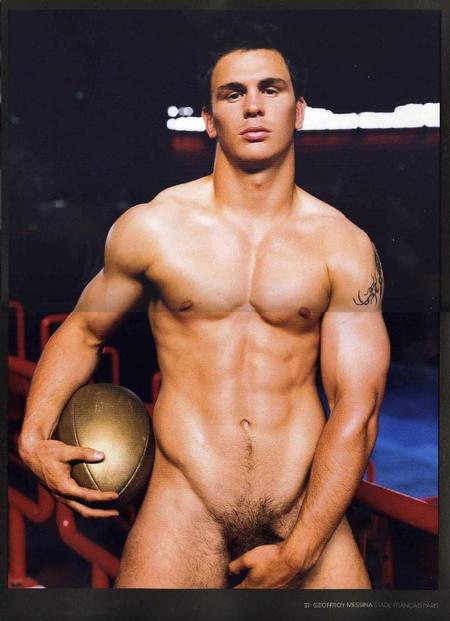 These Dieux du Stade 2007 calendar pictures just keep leaking, so of course I have to keep posting them for you all, and it seems that these beefy guys are covering up less and less. See quite a bit of hot French rugby player penis after the jump [very NSFW].