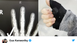 Broke my thumb yesterday in practice. It won't stop me from competing (obvi) but it does prevent me from shaking Pence's hand so… Silver linings!…