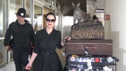 The glitz! The glamour! Dita Von Teese‘s kitty Aleister is on his high horse… er… suitcase, and is ready for the paparazzi! Watch him eat…