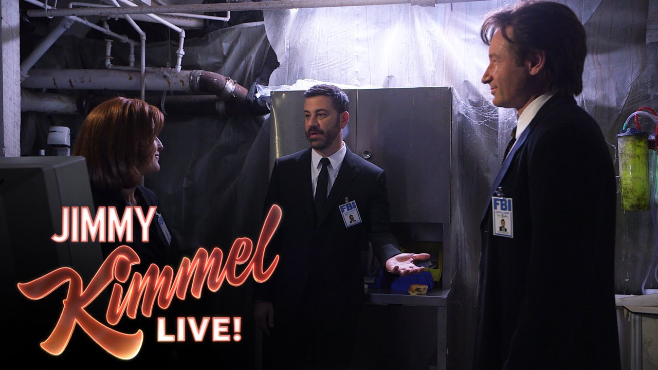 Gillian Anderson looks fierce! She definitely drank that Death Becomes Her serum! Check out Kimmel, Scully And Mulder above!